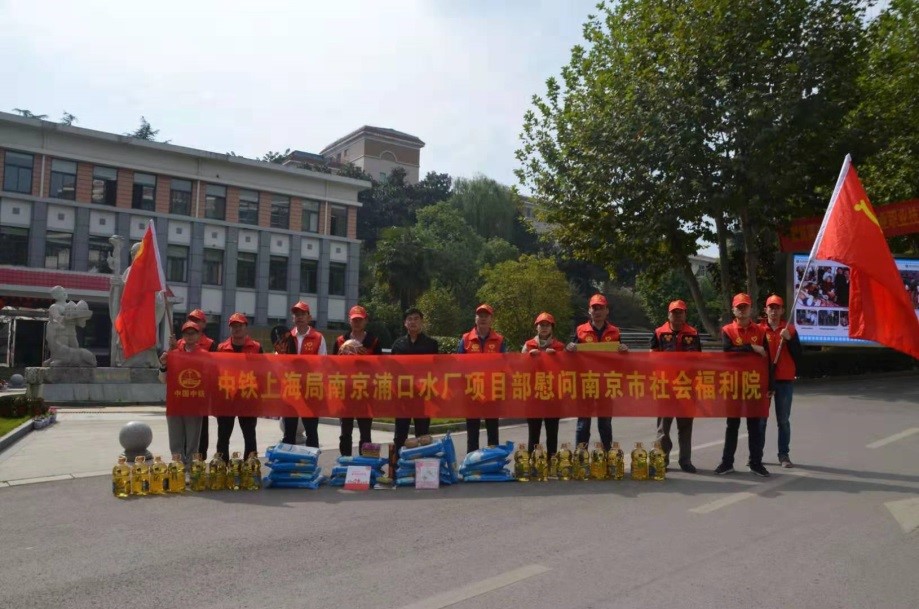 ?10月17日第六個國家扶貧日當日,南京浦口水廠項目部開展慰問南京市社會福利院活動。項目部志愿者與福利院老人聊天,打掃衛生,并為他們送上食用油、大米等慰問品。