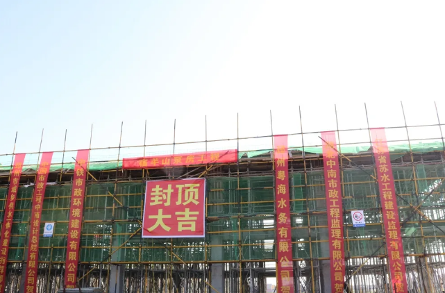 11月4日,在泵車和罐車的轟鳴聲中,邳州市供水一體化PPP項目宿羊山區域加壓泵站順利封頂。